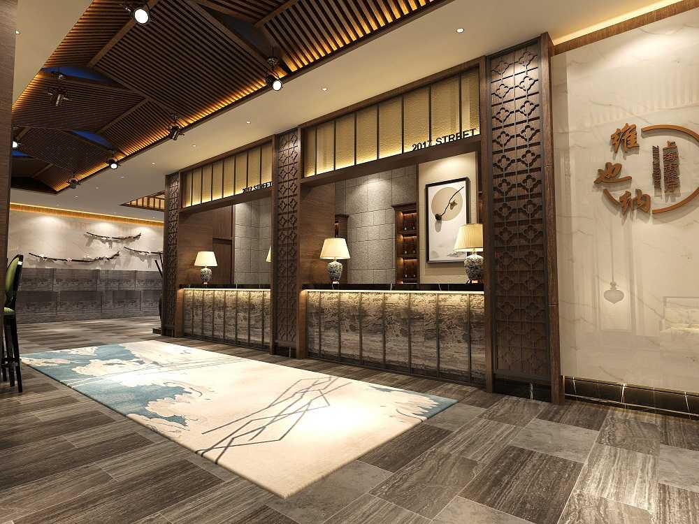 萬達子語項目面積:5500 m2、設計風格:中式禪意,商務酒店是結合古典與時尚的設計典范,充分融合了地域的歷史文化因素。酒店地處成都市金沙遺址附近,以商周時期為歷史背景,設計師提煉出古蜀文化簡潔、淳樸的風格內涵,采用整塊毛石作為大廳服務臺,體現原始、粗獷的意境,通過書法和壁畫的描繪,展現古代川西平原繁榮昌盛的景象