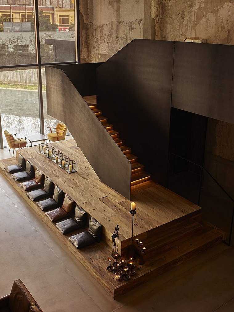 本案特色酒店設計建筑面積不大,層高也不高,但室內設計確獨具特色,你可以說是復古風格,也可以說是一種工業風格。
